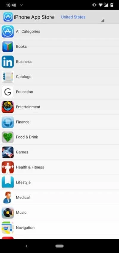 Bu uygulama, tıpkı normal bir iPhone cihazında olduğu gibi, Android cihazınızdan iOS uygulama mağazasını keşfetmenize yardımcı olur. En çok satan, en çok gelir getiren ve en ücretsiz gibi favori içeriklerinizi aramanızı kolaylaştırmak için birden fazla kategori sunar. Tüm önemli kategorileri ana ekranda bulabilirsiniz ve varsayılan mağaza konumunu da değiştirebilirsiniz.